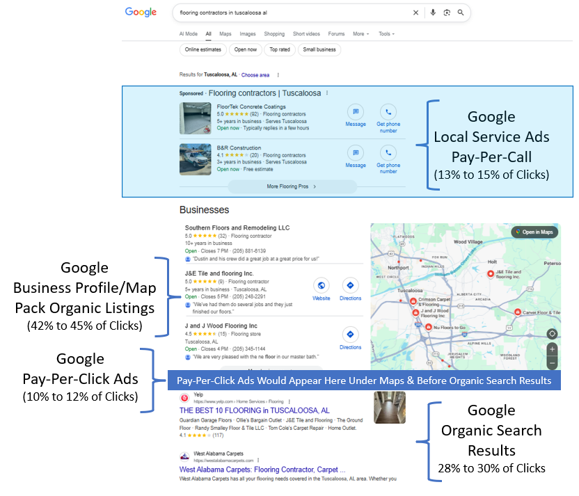 42%-45% of Search Clicks Are Business Profile/Map Pack